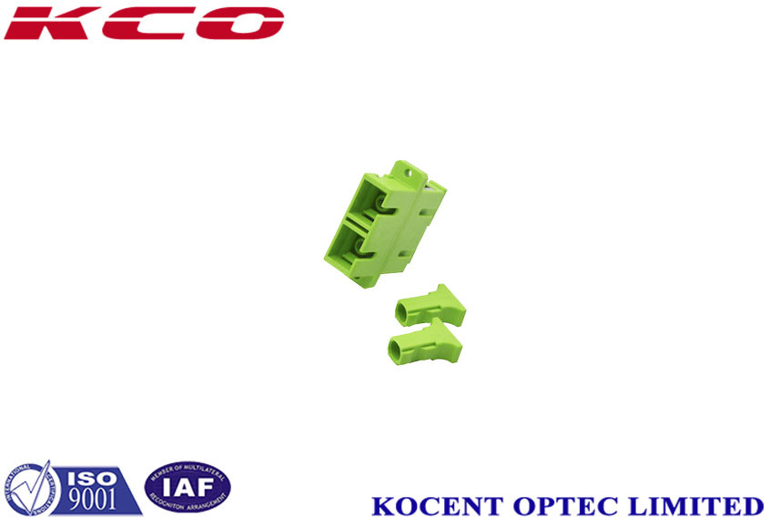 Adapter optyczny z zielonych włókien SC/APC z paskiem, z pokrywką od pyłu, dupleks